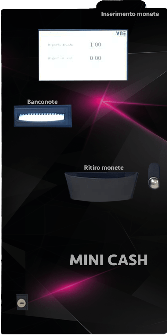 La cassa automatica più compatta della famiglia VNE. Da utilizzare in tutti quegli esercizi commerciali in cui il volume delle transazioni in contanti non superi le 70 al giorno e, grazie alle sue dimensioni ridotte e alla forma lineare, si integra facilmente in qualsiasi arredamento. Il pannello frontale è completamente personalizzabile.