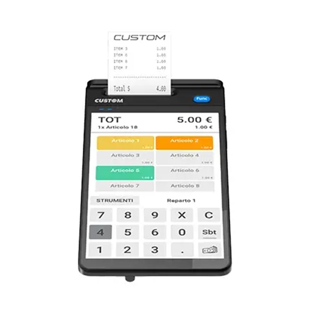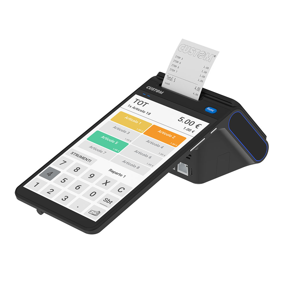 - Stampante integrata e tastiera virtuale: Stampante integrata da 57 mm a elevata affidabilità e tastiera virtuale via browser